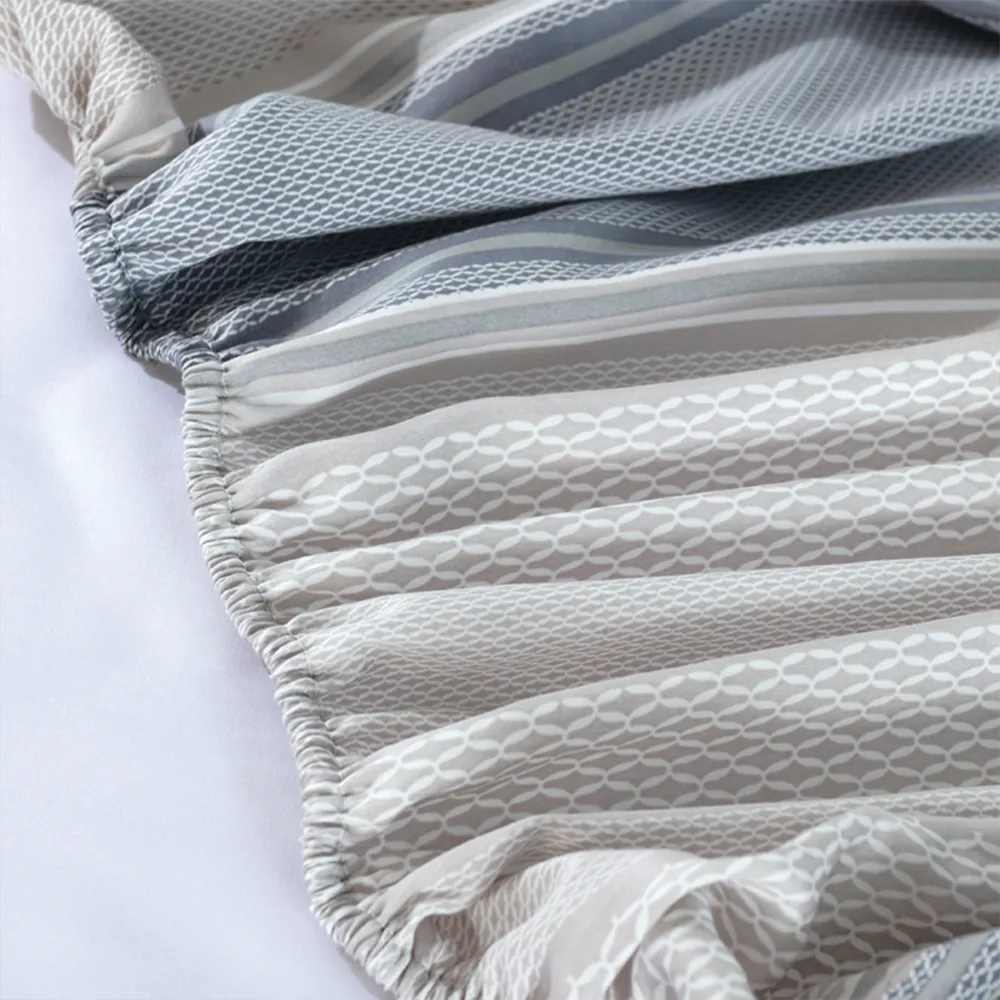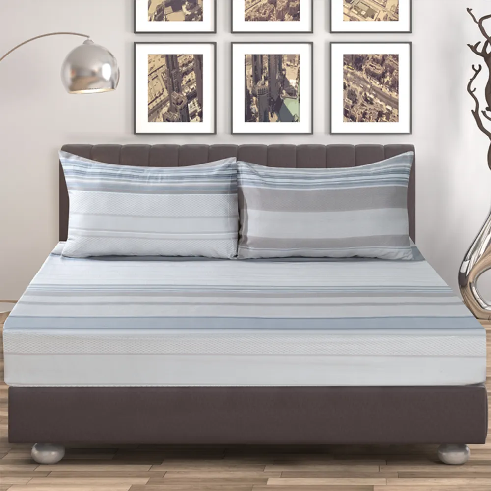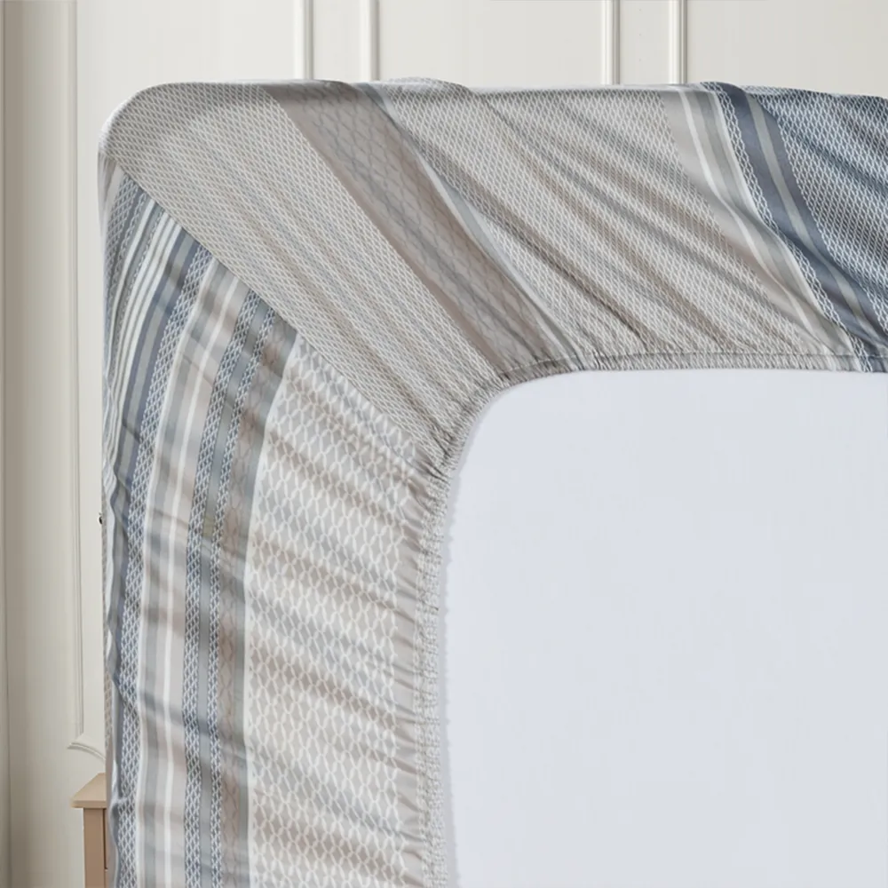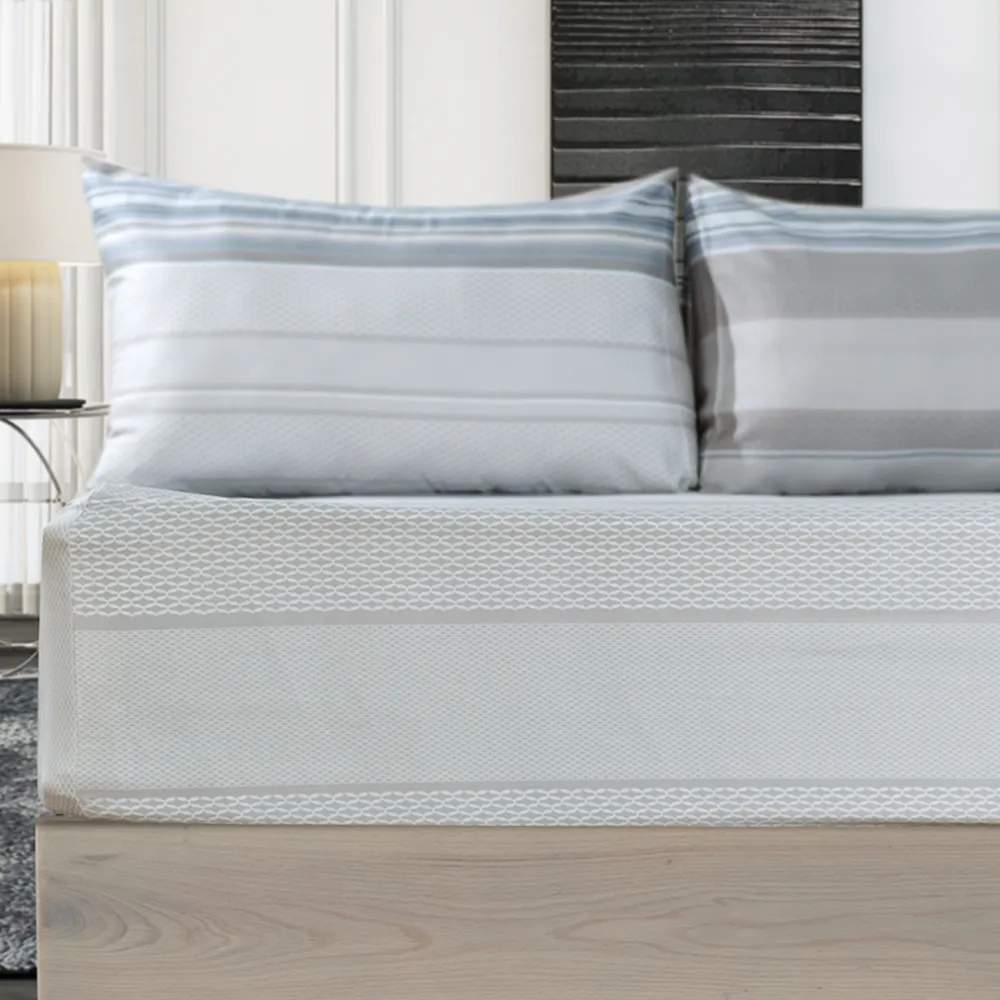 استمتع بالرّاحة المتجدّدة باختيارِك شرشف مطاط من القطن المصريّ والسّاتين. يضمن لك هذا الشرشف المصنوع من القطن المصريّ ۱۰۰% الرّاحة طوال السّنة، ويحوّل سريرك إلى ملاذ للسّكينة. يُعدّ القطن المصريّ، المعروف بجَوْدته الاستثنائيّة، من بين أفضل أنواع القطن في العالم. وإلى جانب نعومته الفخمة، فإنّ أليافه طّويلة التّيلة تضمن المتانة الدّائمة، حيث أنّها تقاوم التّمزّق والتّكتّل. يمزج شرشف سورينتو بشكل متناغم بين الألوان الهادئة بشكلِ خطوط أفقية. يرسم هذا التّصميم لوحةَ ألوان مريحة وهادئة تذكّرنا بالسّكينة والصّفاء اللّذَين نجدهما في سماء الصّيف.
