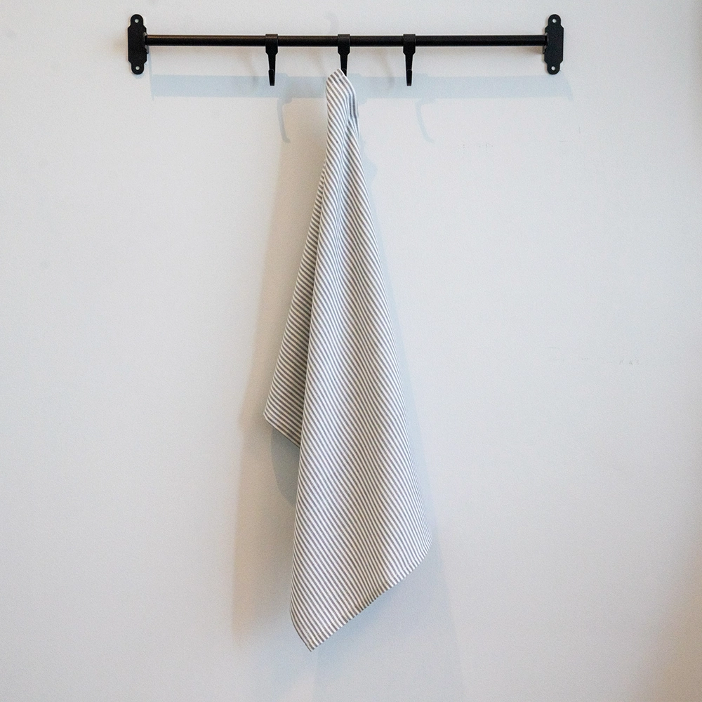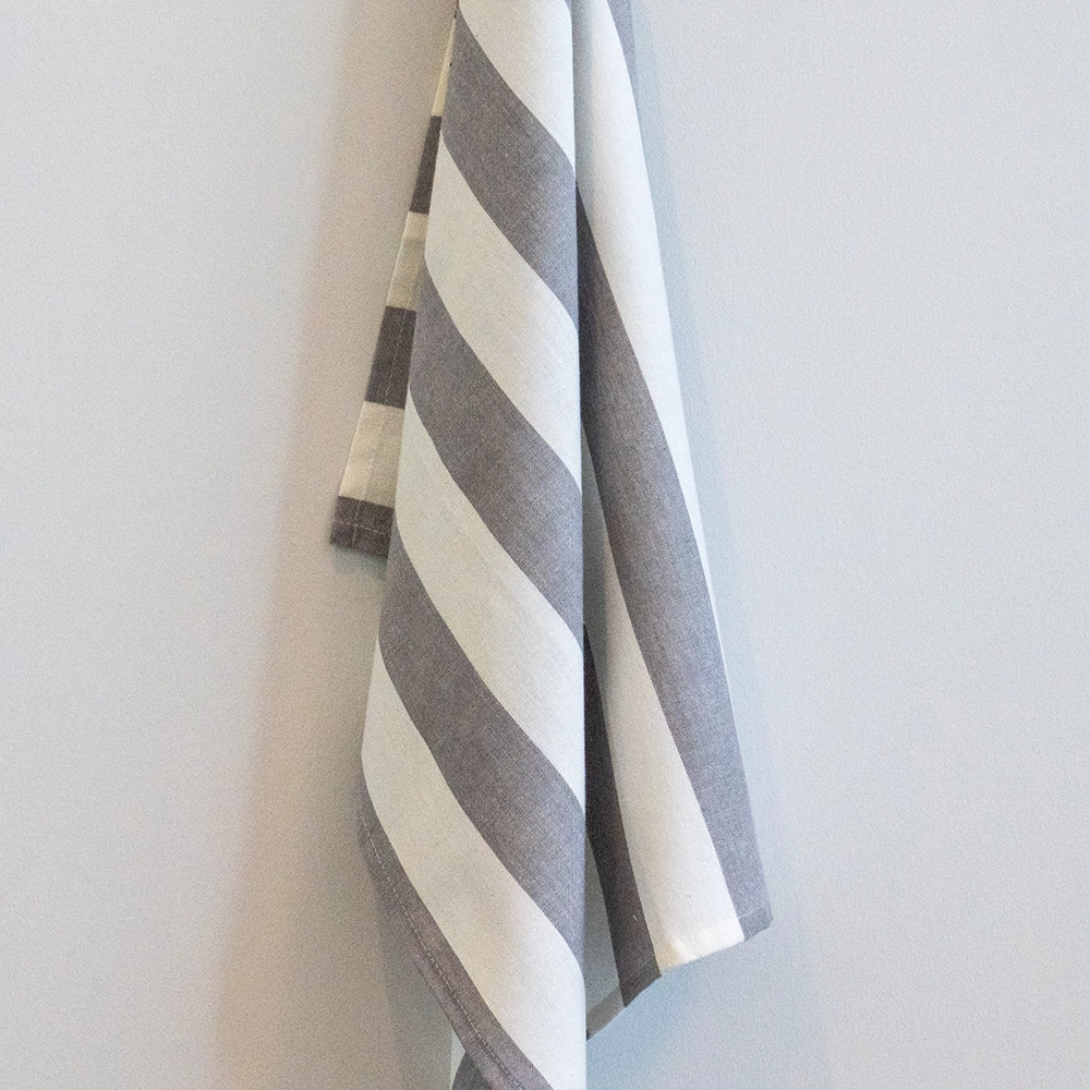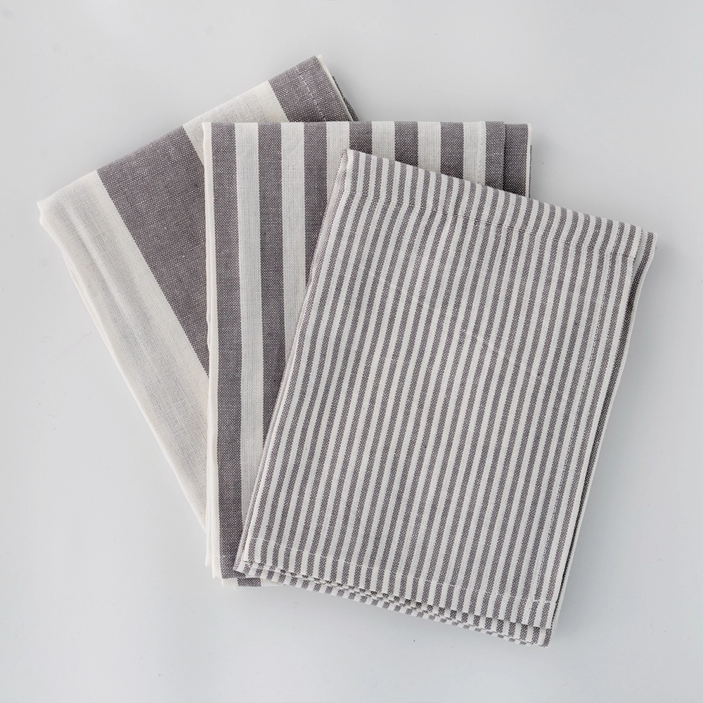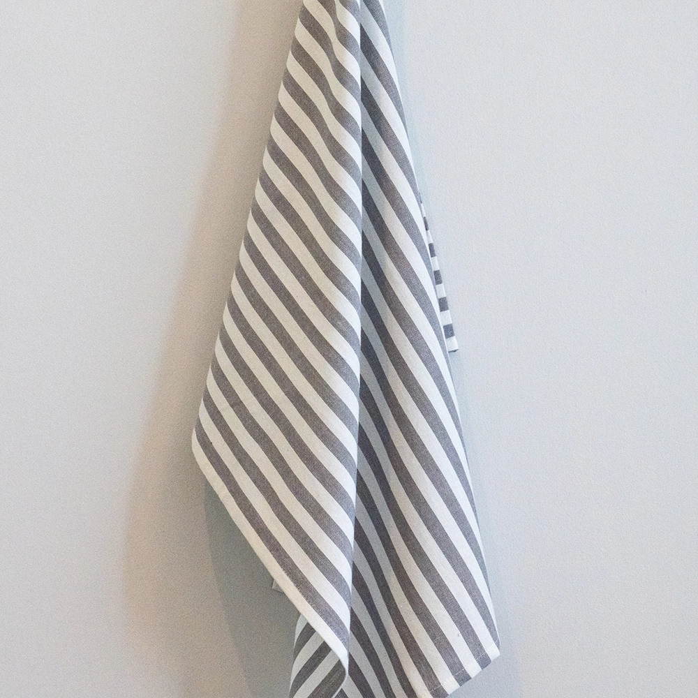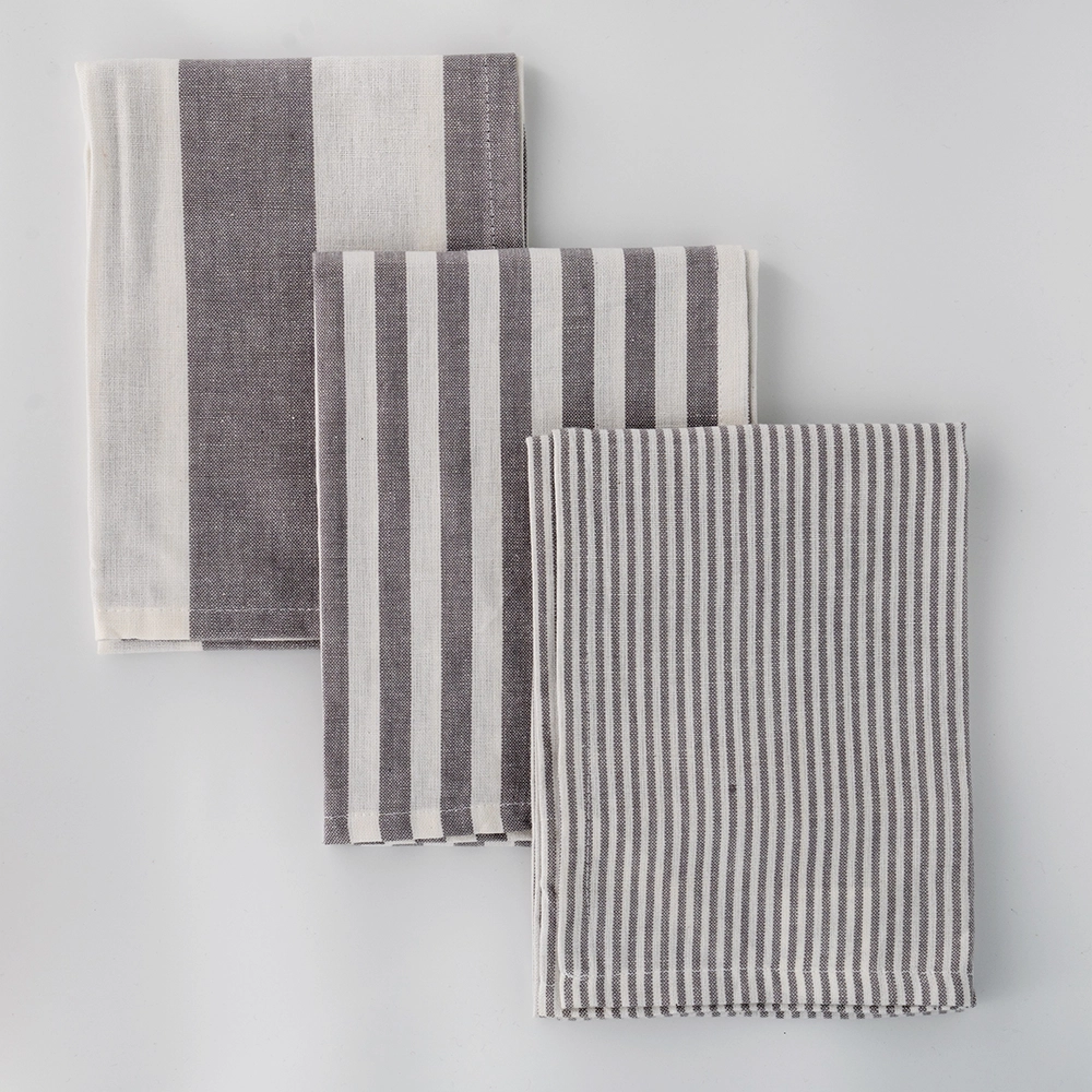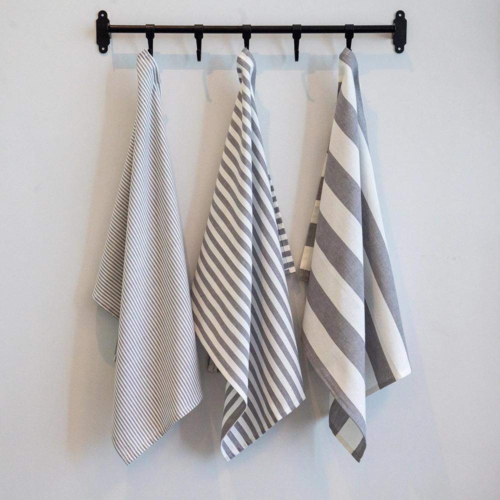 طقم مناشف مطبخ رمادية مقلمة