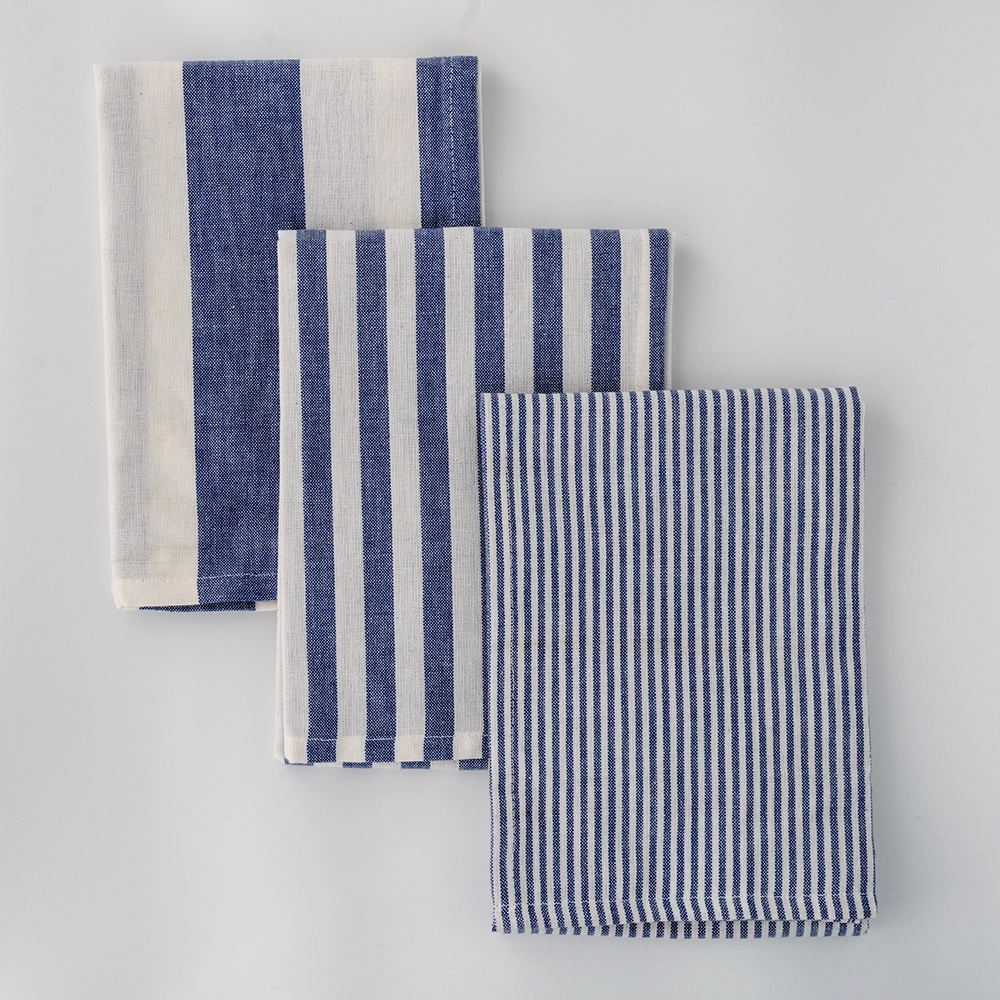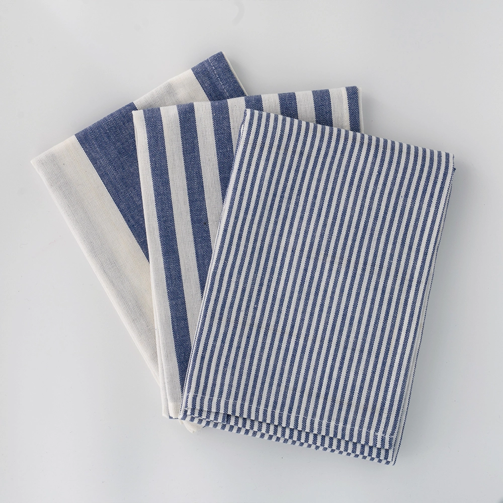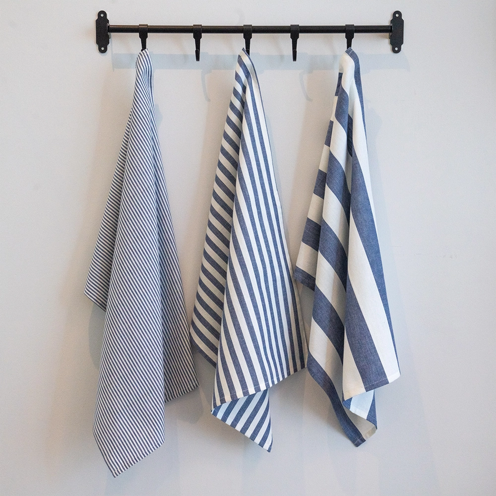 عزز مطبخك مع التصميم الكلاسيكي لطقم مناشف المطبخ الزرقاء المقلمة خاصتنا. توفر هذه المناشف المصنوعة من قطن 100% المزيج المثالي بين العملية والأناقة مما يجعلها مثالية لإضافة لمسة جمالية للمطبخ.