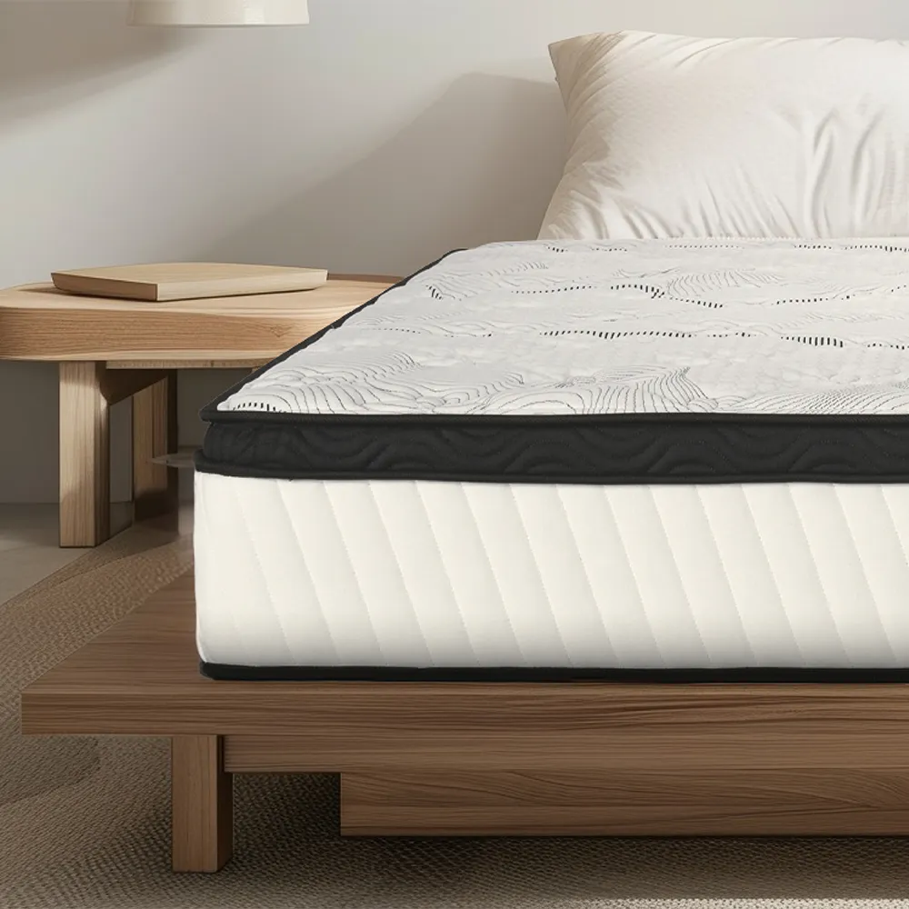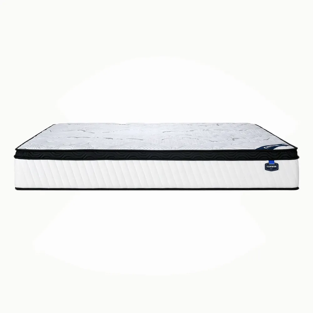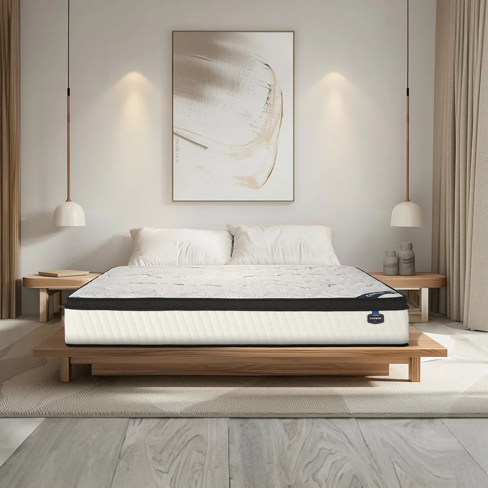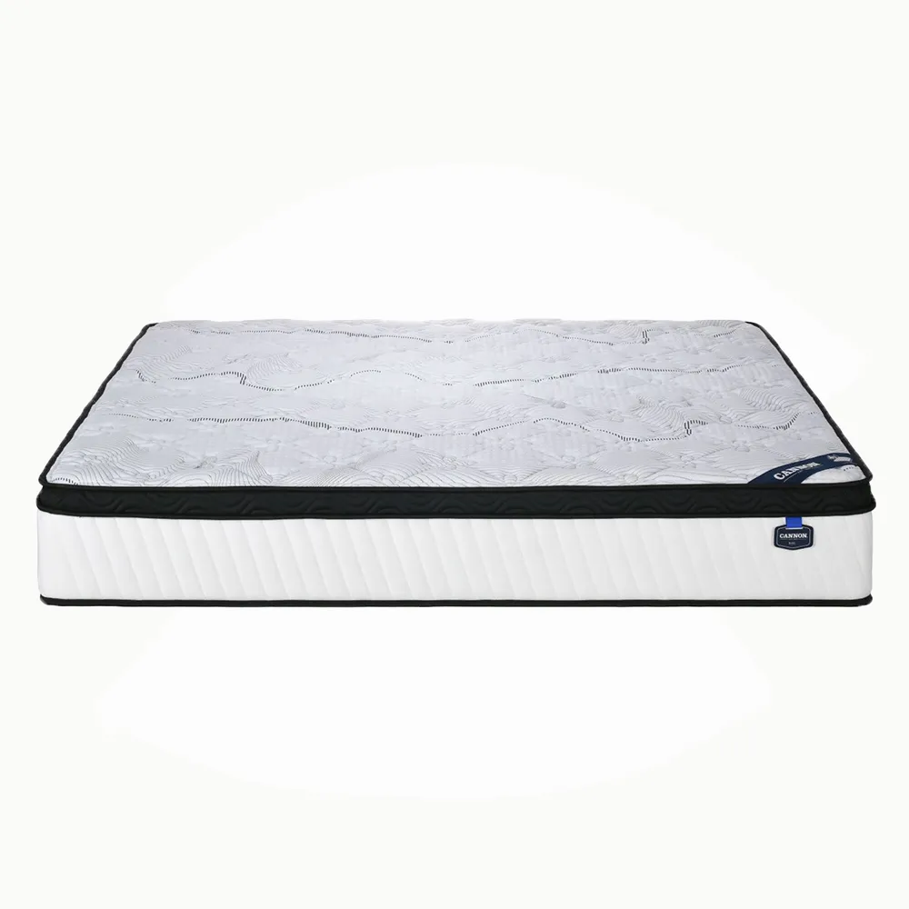 حسن من جودة نومك وارتقِ به إلى آفاقٍ جديدة مع هذه المرتبة التي تُعتَبَر تحفة فنّيّة دقيقة الصّنع صُمِّمَتْ لتمنحَك تجربة نوم لا مثيل لها. يقدّم تصميم يورو توب، وهو غطاء فخم مُبَطّن ومريح، دعمًا لا مثيل له من خلال مزجه بين المواد، بما في ذلك الرغوة الفائقة النّعومة وحشوة البوليستر البيضاء والحراريّة المترابطة وكأنك كنت تغفو على سحابة في غاية النّعومة. إنّ قماش جاكارد يزيّن إطار يورو توب ويضيف لمسةً من الرّقيّ إلى غرفة نومك، بينما يعدك إطار الأساس بمتانة تدوم طويلًا ممّا يجعلك تشعر بالانتعاش والنّشاط المتجدّد، كما يجعلك مفعمًا بالحيويّة ومستعدًّا لمواجهة يومٍ جديد.