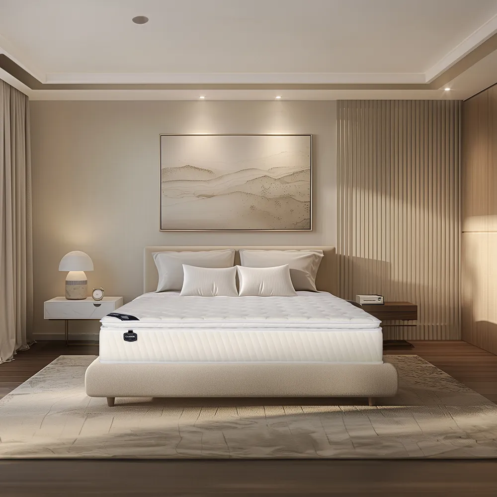 انغمسْ في تجربة نوم فاخرة مع مَرْتَبة كلاوْد. إنّ سطح الوسادة المزيّن بنسيج الخيزران الطّبيعيّ يوفّر لك لمسةً ناعمةً وصديقةً للبيئة. تضمن لك طبقات الرغوة الفائقة النعومة والرغوة العالية المرونة الرّاحة والدعم، بينما يوفّر نظام النّوابض الجيْبيّة المتينة ثباتًا دائمًا ودعمًا فرديًّا.