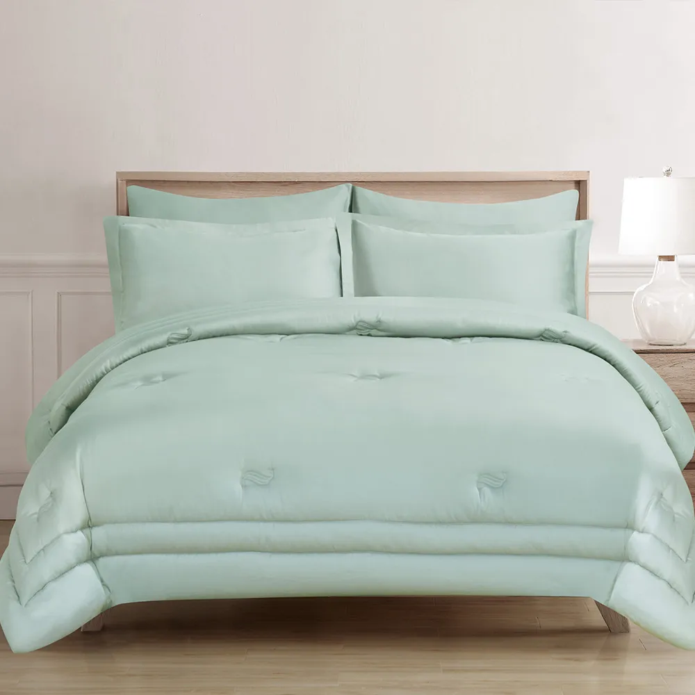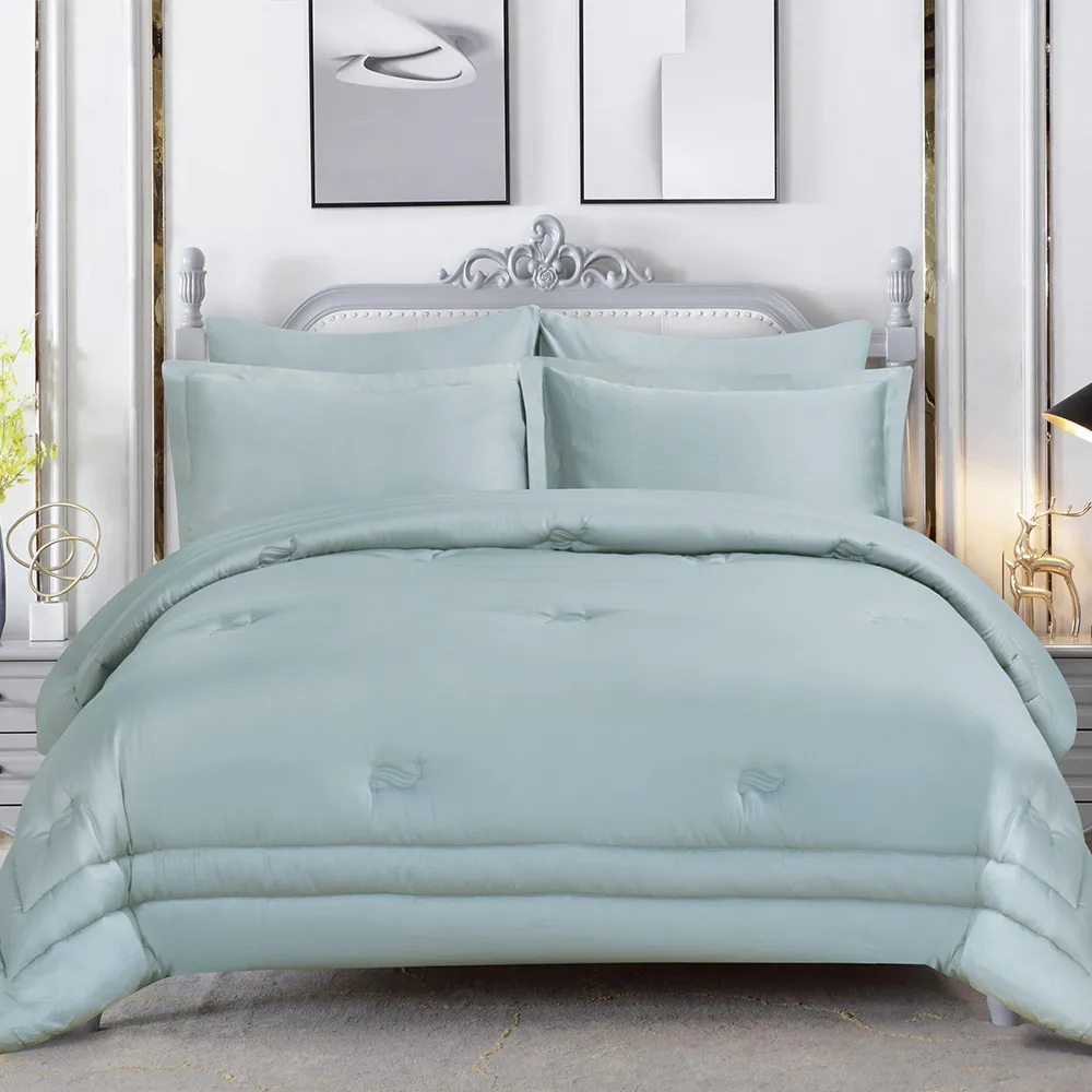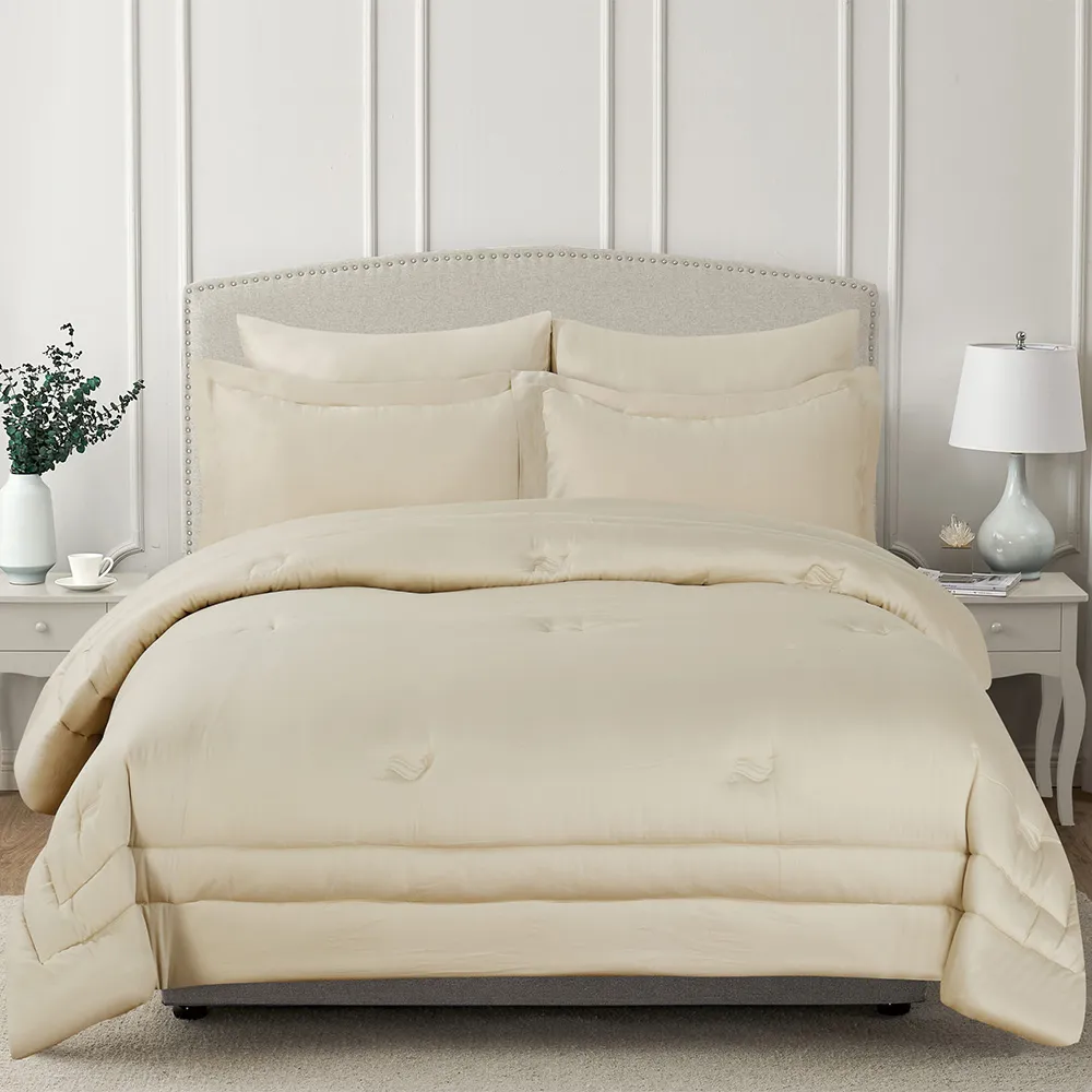 استمتع بالراحة المتجدّدة باختيارِك طفم اللحاف السادة من القطن المصري والساتين. يضمن لك هذا الطقم المصنوع من القطن المصري 100% الرّاحة طوال السّنة، ويحوّل سريرك إلى ملاذ للسّكينة. يُعدّ القطن المصري، المعروف بجَوْدته الاستثنائيّة، من بين أفضل أنواع القطن في العالم. وإلى جانب نعومته الفخمة، فإنّ أليافه طّويلة التّيلة تضمن المتانة الدّائمة، حيث أنّها تقاوم التّمزّق والتّكتّل.