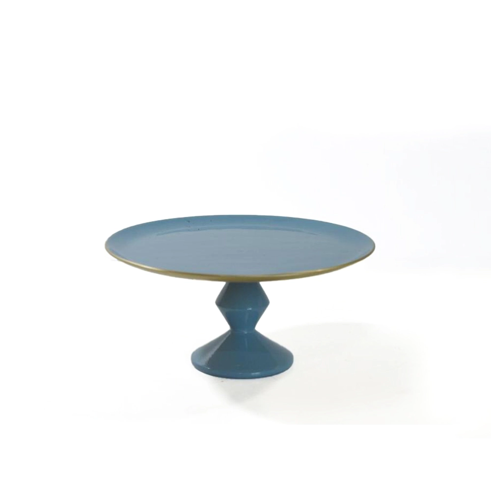 This food-safe aluminum and enamel cake stand adds an elegant touch to your dessert presentation, elevating your table setting.