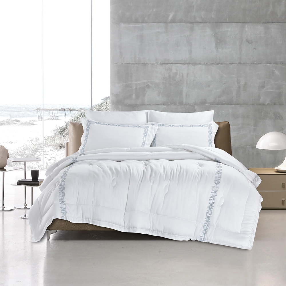 Immerse yourself in the rejuvenating comfort of our Lyocell Embroidered Duvet Cover set. This duvet cover set keeps you comfortable year-round, transforming your bed into a haven of tranquility. Admire the intricate embroidery that adds a touch of sophistication to your bedroom.