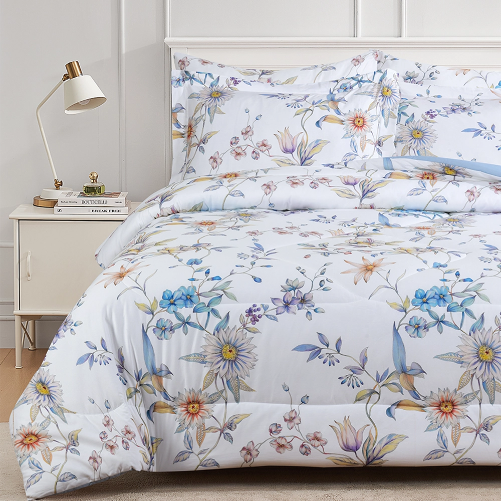 Elevate your sleep experience with our Spring Comforter Set. Crafted from 100% cotton and filled with 100% polyester fiber, it delivers soft and breathable sleep.