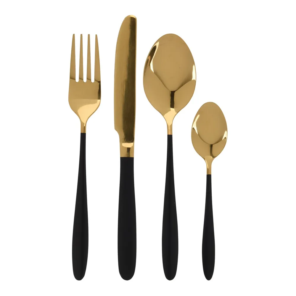 Add a classic charm to your table setup with the Gold Black Cutlery Set. Crafted from stainless steel with a gold finish, this set combines timeless elegance with everyday durability, making it ideal for both casual meals and sophisticated dining.
