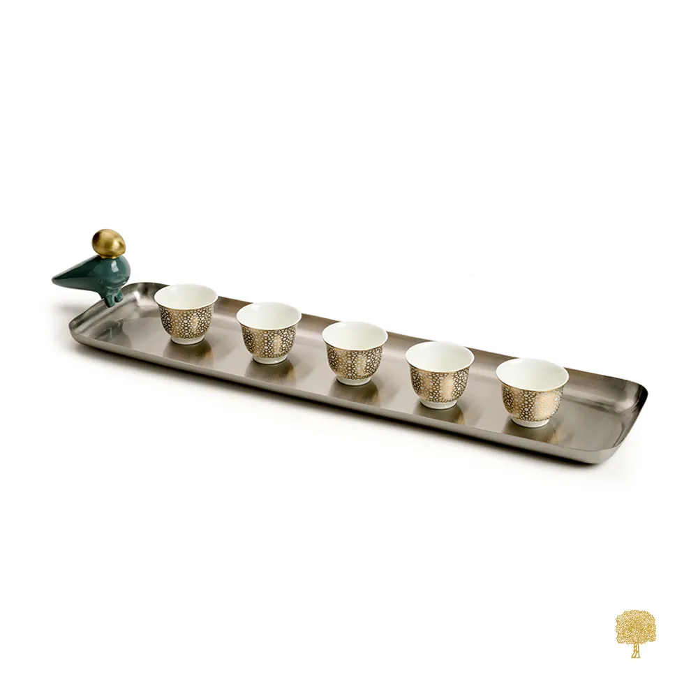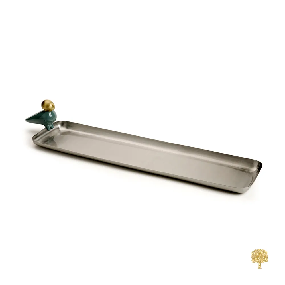 Elevate your gatherings with this rectangular tray, featuring a bird detail. A perfect blend of style and function for serving or display.